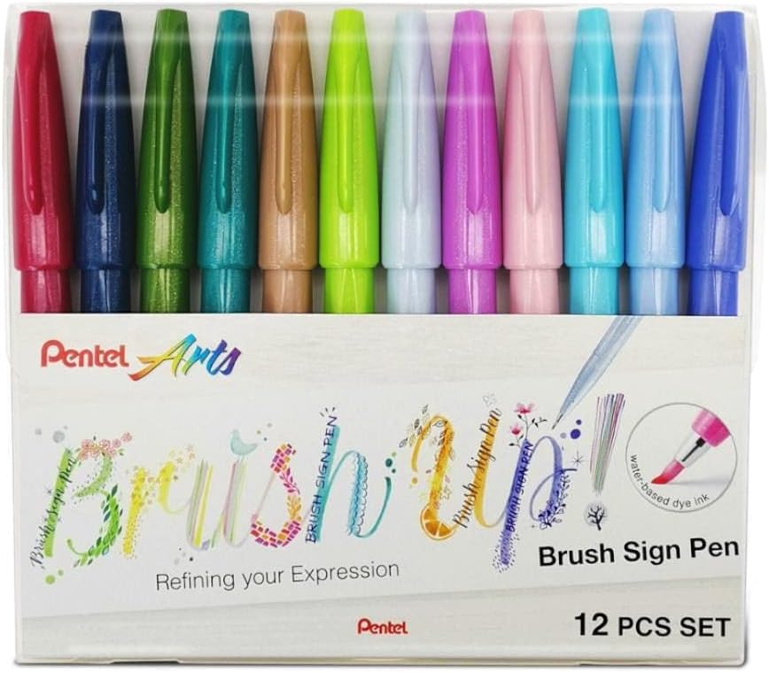 Caneta Pincel Brush Sign Pen Pentel – 12 Cores
