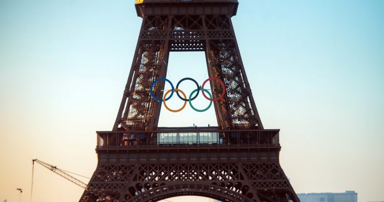 Torre Eiffel exibe anéis olímpicos na contagem regressiva para Paris 2024