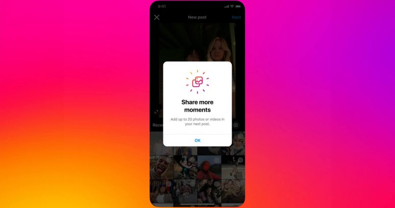 O Instagram anunciou que agora é possível adicionar até 20 fotos ou vídeos em um único post carrossel. Anteriormente, o limite era de 10 conteúdos por publicação.
