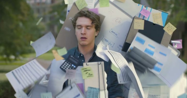 ↳ O enredo central: No coração da campanha, um comercial retrata a rotina esmagadora de um homem afundado em uma avalanche de tarefas no escritório. Ao som de “I Want to Break Free”, o protagonista só encontra alívio ao quebrar um KitKat.