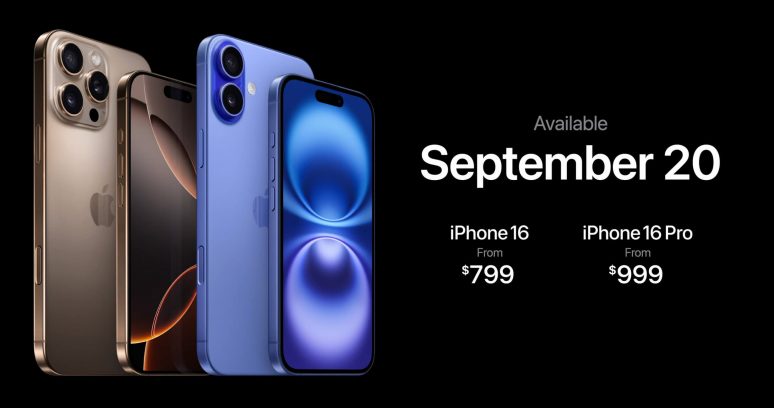 O iPhone 16 estará disponível a partir de US$ 799 (versão de 128GB), enquanto o modelo iPhone 16 Plus, com tela de 6,7 polegadas, começa em US$ 899.