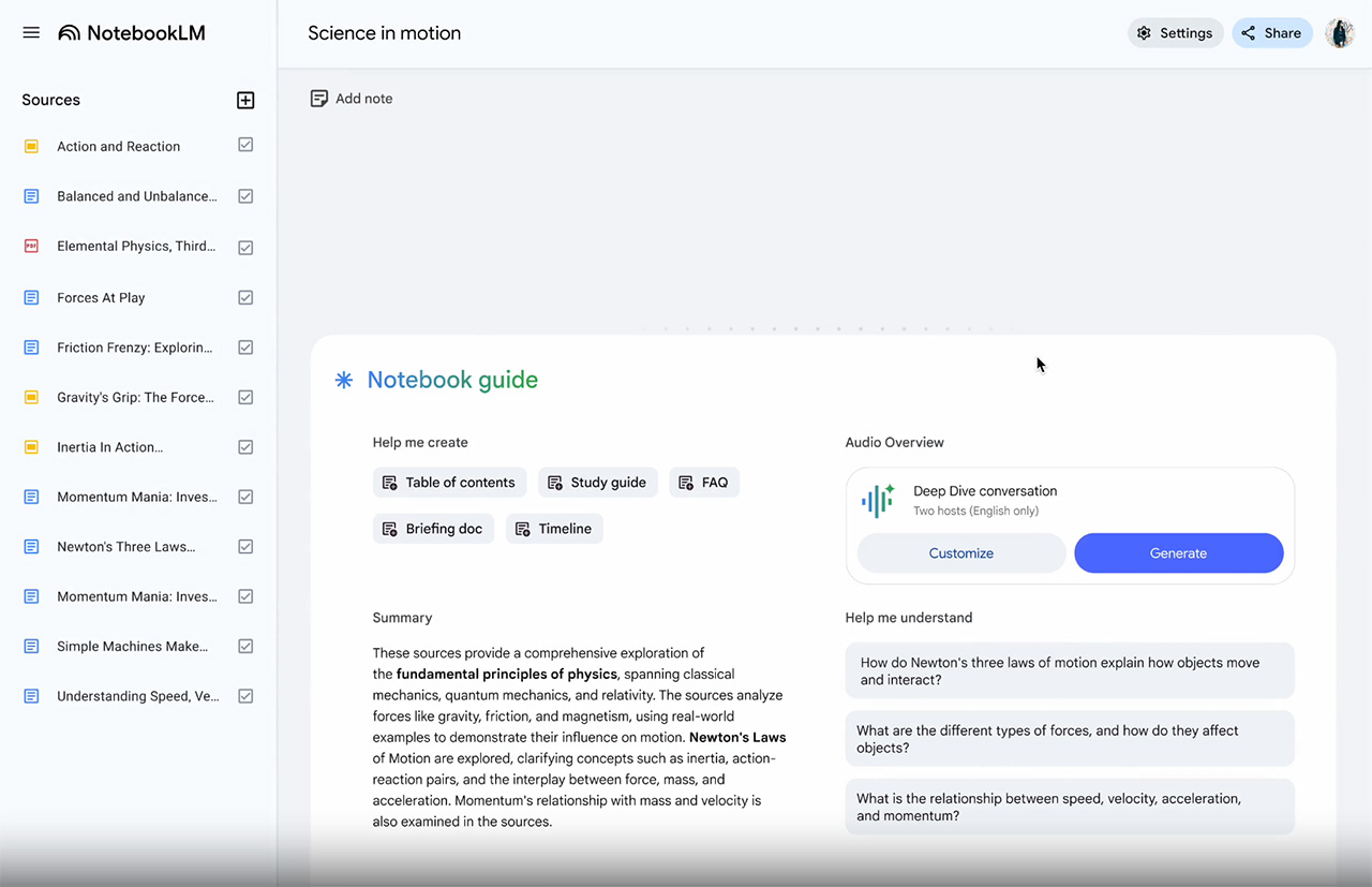 Apresentado pela primeira vez durante o Google I/O, o NotebookLM foi projetado para transformar fontes de texto em uma discussão em formato de podcast, gerada por IA. O recurso já é amplamente usado para criar resumos rápidos e explicações detalhadas de conteúdos acadêmicos e profissionais. Agora, com as novas atualizações, os usuários podem guiar a conversa, indicando tópicos de maior relevância e ajustando o nível de conhecimento dos “apresentadores” de IA.