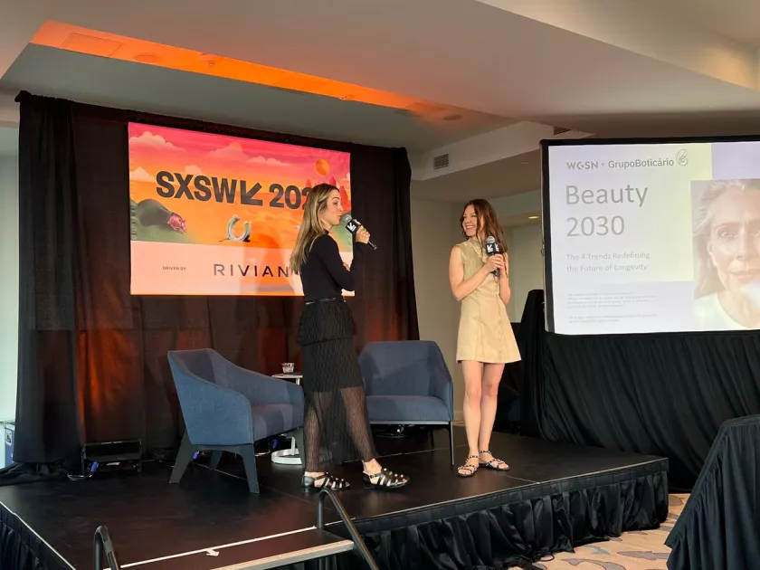 Tive a oportunidade de compartilhar mais sobre o assunto na apresentação feita em parceria com Renata Gomide do Grupo Boticário, onde compartilhamos quatro tendências que movimentarão o universo da beleza: espectro etário, sobreviver e prosperar em meio a calamidade climáticas, design inclusivo e acessível e, por último, beleza pautada por ciclos de vida.
