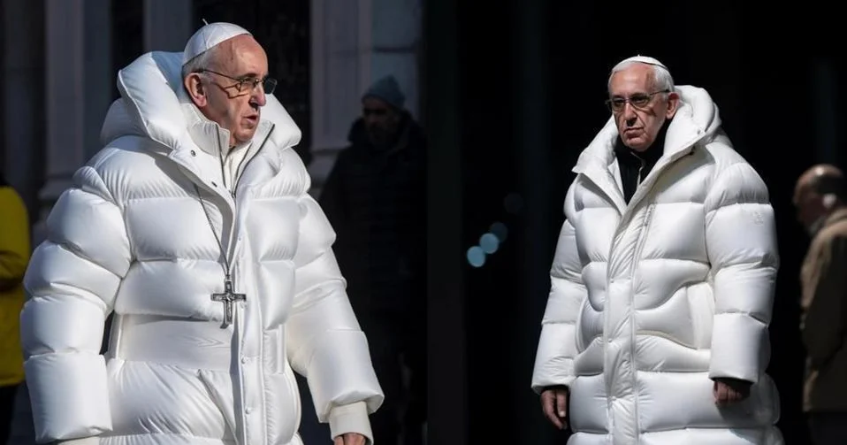 - 2023: Papa com casaco Balenciaga (imagem IA) = início da era das fotos sintéticas