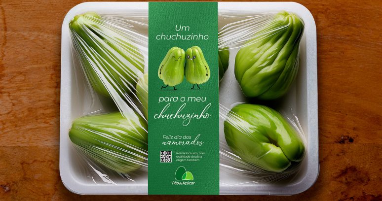 O Pão de Açúcar decidiu que nada diz “eu te amo” como um chuchu embalado para presente. A rede criou embalagens especiais de Dia dos Namorados para produtos como laranja (“minha metade”), morango (“moranguinho”) e o próprio chuchu (“chuchuzinho”), transformando seção de hortifruti em vitrine romântica.