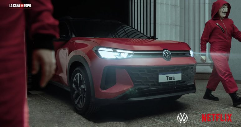 A Volkswagen está apostando alto na estreia do Tera, e fazendo isso com a força de quem sabe contar histórias. A montadora lançou uma campanha em parceria com a Netflix, na qual o novo SUV aparece como personagem principal de séries como La Casa de Papel, Wandinha, Cobra Kai, The Witcher e o filme Persuasão.