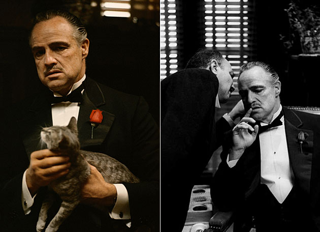 “Como fotógrafo, às vezes você precisa ser uma mosca na parede, clicando a sequência inteira com o blimp (caixa de metal com espuma que abafa o som da máquina fotográfica). Minhas duas fotografias memoráveis nasceram dessa forma: Brando segurando o gato, e Salvatore Corsitto (Bonasera) sussurrando no ouvido de Don Corleone. Ambas as fotos foram usadas para iconizar o filme, e hoje são imagens familiares no mundo inteiro.”