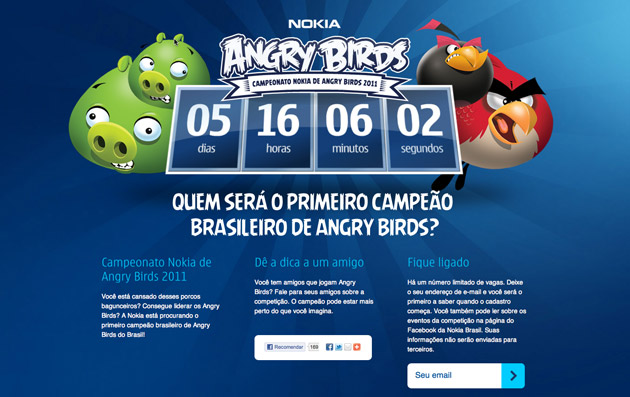 A inscrição é gratuita, é pode ser feita no site angrybirds.nokia.com.br.