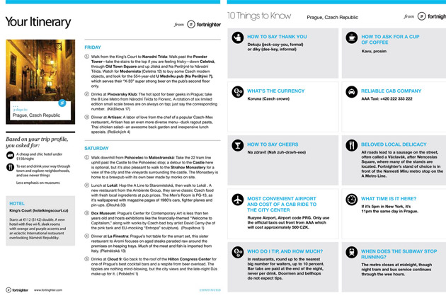 Depois de uma semana, a equipe do Fortnight – formada por especialistas que escrevem para o NY Times, Lonely Planet, etc – lhe envia um PDF com o itinerário tailor-made. Veja uma amostra aqui