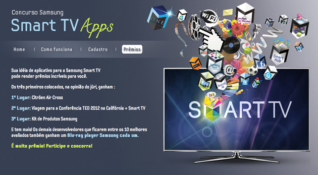 Para quem curtiu isso, a hora é agora. Entre no site samsung.com.br/concursosmarttvapps e conheça o primeiro concurso para desenvolvimento de aplicativos para TVs, promovido pela Samsung.