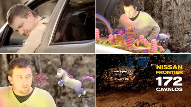 Apesar de ser mais um filme da Nissan tirando sarro da concorrência – 172 cavalos da Frontier contra os pôneis dos outros – o que marca aqui é o bom-humor e a musiquinha grudenta.