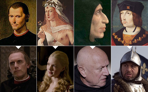 “The Borgias” mostra de forma teatral toda a corrupção da Santa Igreja, as desavenças entre os Principados (como a Itália não havia um governo único, suas cidades funcionavam como reinados independentes) e o jogo de poder e interesse entre as famílias. Personagens históricos permeiam tudo isso, como Maquiavel, Lucrécia Borgia, Girolamo Savonarola e o Rei Charles VIII. E a construção dos personagens e figurino seguindo os retratos famosos de cada um deles é memorável: