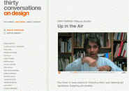 O projeto Thirty Conversations on Design apresenta anualmente 30 profissionais do mais altíssimo escalão do design mundial e os convidam a responderem, em vídeo, duas perguntinhas interessantes: