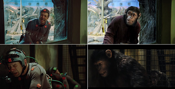 A transformação de Andy Serkis no macaco CésarUm dos elementos de mais orgulho para a equipe original de “Planeta dos Macacos” foi a criação das máscaras sintéticas para os atores, capazes de transmitir suas expressões através do látex. Trabalho hercúleo e bastante efetivo, permitindo maior conexão entre personagem e público. Tim Burton seguiu a mesma linha e transformou Tim Roth, Helena Bohan-Carter e Michael Clarke Duncan em símios aceitáveis, mas sofreu por ter aberto mão do elemento social e optado pela complicada rota dos mundos alternativos e da viagem no tempo. Exceto pela persona de César e sua jornada messiânica, “Planeta dos Macacos: A Origem” abandona os demais elementos e, inevitavelmente, é fruto de seu tempo, ao permitir que a tecnologia seja sua maior conquista.