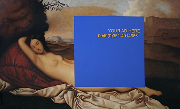 O artísta espanhol Lino Lago apresentou uma série de trabalhos que, embora pareçam montagem de Photoshop, são duras críticas feitas em óleo sobre tela. Uma série que abre espaço para a discussão do exagero da veiculação de anúncios, não nos veículos tradicionais, mas sim nos lugares mais improváveis: onde não gostaríamos de interferências, e no entanto…