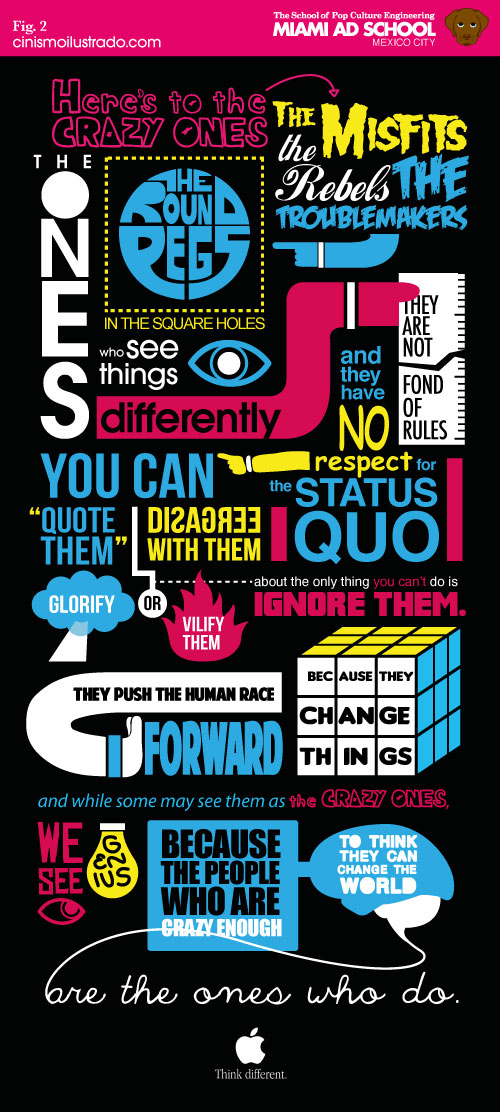 Nada insípida, entretanto, foi a campanha “Think Different”, da Apple, que rendeu a ilustração desta semana. Esta bela versão do manifesto “The Crazy Ones” bem que merecia um pôster!