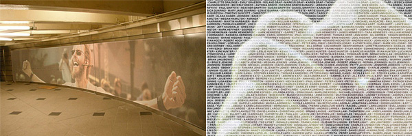 Depois tomou conta da estação de metro de Columbus Circle, a mais perto do local das inscrições e parada obrigatória para todos os inscritos. E fez isso com estilo: numa mega-instalação com a tamanho de dois campos de futebol, com 17 paineis interativos e mais um mega-mural com o nome de todos os participantes da maratona.