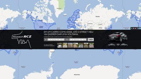 Esse mashup com o Google Maps promove o Peugeot RCZ, que o coloca para dar uma voltinha dentro do carro. Dependendo do trecho, a animação funciona muito bem.