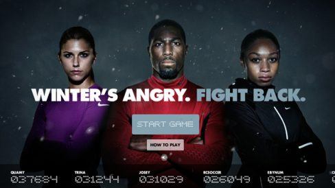 Nos EUA, a campanha “Winter’s Angry. Fight Back.” promove uma coleção especial de roupas e acessórios esportivos para o frio, estrelada pelos atletas americanos Alex Morgan, Allyson Felix e Greg Jennings.