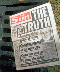 Pode ser pior? O pior é que pode. Aqui entrou a cobertura do jornal The Sun. Para entender o tamanho da encrenca, esta ao lado foi a capa do jornal no dia seguinte da tragédia trazendo “a verdade”.