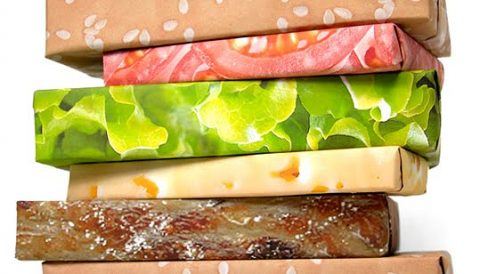 O Cheeseburger é só um exemplo do que promete a empresa Gift Couture, que está procurando financiamento através do Kickstarter. A proposta é criar uma série de papéis de presente criativos.