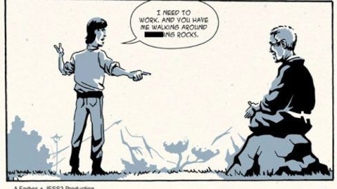 Não importa se é em Hollywood, em histórias mitológicas, na literatura ou nas produções da Disney: o conceito da Jornada do Herói está sempre lá. Os 12 passos traçados por Joseph Campbell podem ser reconhecidos nas mais diferentes histórias. Inclusive na de Steve Jobs. Muita viagem? É, pode ser. Mas foi o encontro com o mentor – 4o. passo da Jornada do Herói – que serviu de inspiração para The Zen of Steve Jobs, uma graphic novel produzida pela Forbes em parceria com a JESS3.