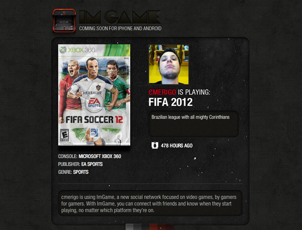 Começando principalmente com um aplicativo para iOS – com promessa de sair para Android e WP7 no futuro, além de uma interface web – o ImGame pode ser resumido como um Foursquare para jogos. É irônico dizer isso, já que o próprio 4SQ tem como essência conceitos de videogame.