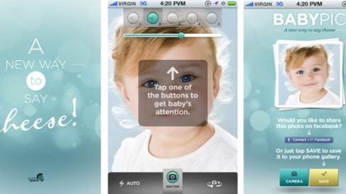 Você continua apontando a câmera do seu iPhone pro seu bebe, mas na tela que fica virada para você, 5 opções de som que chamam a atenção da criança.