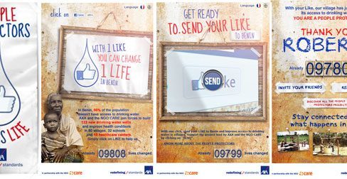 O ponto em comum entre todos eles foi encontrado pela agência de propaganda francesa Marcel: para divulgar a plataforma People Protectors em sua página no Facebook, a seguradora Axa, junto à ONG Care, criou o Like is Life, o projeto que possibilita às pessoas a enviarem os seus “LIKES” para Benin como se fossem doações, mostrando que apoiam a construção de poços de água potável para os 50% dos habitantes do país que não têm acesso à água limpa.