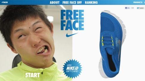 A questão é que se eu falar muito sobre esse site, pra explicar porque achei divertido, vou acabar com a graça. Mas o resumão de tudo é o sequinte: um tênis que ultramegapower-flexível + criatividade japonesa + interação + tecnologia para mapeamento e reconhecimento de expressões.