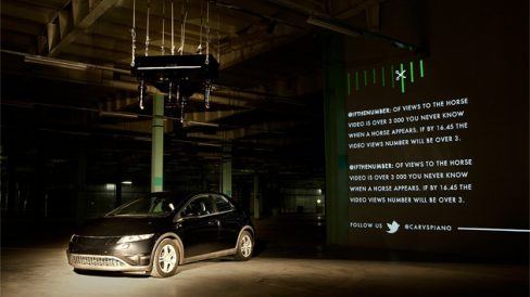 Em cima de um veículo, foi pendurado um piano de 350 kg, sustentando por 9 cordas. Durante toda a semana, eventos aleatórios da vida real definem o destino de cada corda.