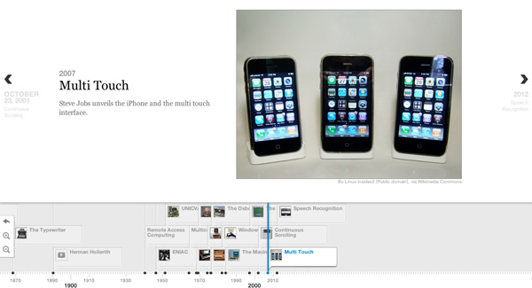 Ela mostra, desde 1600, as interfaces de usuário que revolucionaram o mundo, definindo a computação multi-touch como ela é hoje. Contém imagens e vídeos que explicam as principais criações, essenciais para a evolução da tecnologia.