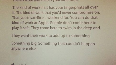 Para os haters é só mais um pedaço de papel com um logo de maçã, para outros – principalmente aqueles que foram contratados – é um baita texto inspiracional para o primeiro dia de trabalho.