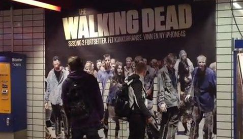 Para promover a segunda temporada de “The Walking Dead” na Noruega e, ao mesmo tempo, levar as pessoas para o site da Fox local, um poster gigante com partes destacáveis foi instalado em uma estação de metrô.