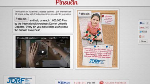 A Fundação de Pesquisa de Diabete Juvenil de Israel (The Juvenile Diabetes Research Foundation of Israel, que luta pela cura da diabete tipo 1) fez uma ação nada menos que no Pinterest, utilizando um trocadilho com um dos termos mais característicos da rede social, o “PIN”. E ainda transformando-o como o principal discurso e principal ferramenta da ação.