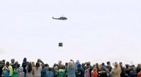 Para amenizar a frustração das pessoas, a rede resolveu aterrisar mesmo na cidade, mas de uma maneira diferente: Levando um caminhão de helicóptero, contendo 10.000 Doritos Locos Tacos.
