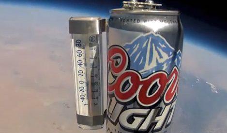 mandou sua cerveja para o espaço só para demonstrar a mudança na lata quando o líquido fica gelado.