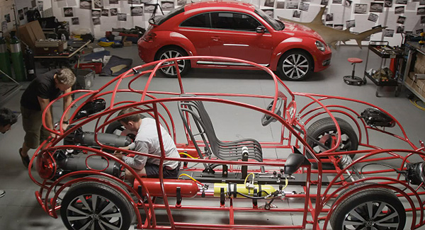 Sendo um programa sobre tubarões, debaixo do mar, a ideia não parece tão simples. Em conjunto com o biólogo marinho Luke Tipple, a equipe de engenheiros da montadora desenhou uma “jaula” no formato de um New Bettle.