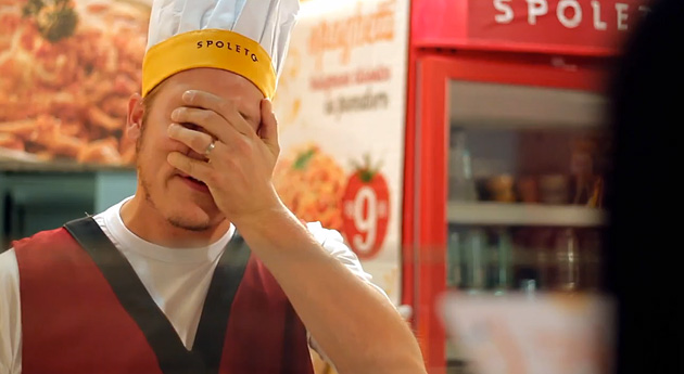 Um dos vídeos, intitulado “Fast Food”, tira sarro, sem rodeios, do atendimento da rede de restaurantes Spoleto. O humorista Fábio Porchat faz aquilo que todo “chef” da franquia faz: Se transforma em um talibã pressionando pela rápida escolha dos ingredientes.