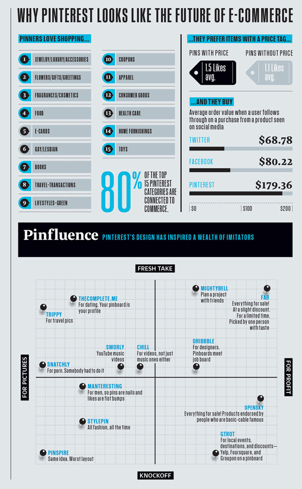 Das 15 principais categorias do Pinterest, 80% são relacionadas com comércio. Isso explica o poder de venda do site.