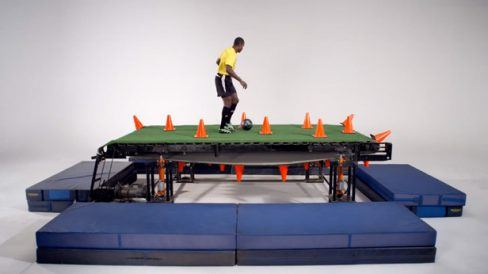A Asics vai pelo mesmo caminho, colocando um jogador de futebol em cima de uma esteira com diversos obstáculos. Tem piadinha até nas letras miúdas.