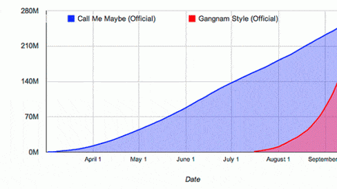 Apesar do indiscutível sucesso chiclete de “Call Me Maybe” nos últimos meses, o hit coreano “Gangnam Style” vem somando em média 6 milhões de novos views por dia. Bem mais dos que os 1.5 milhão diários de Rae Jepsen durante todo o último trimestre.