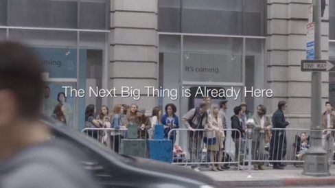 Ah, e sim, tem até um Galaxy S III no comercial. Todo mundo na fila olha, e fica interessado naquilo que a Samsung alega já ter tudo o que você precisa, assinando com: “A próxima grande coisa já está aqui”