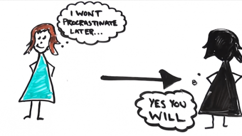 A justificativa para a procrastinação dada pela AsapSCIENCE é que as pessoas têm o hábito de subestimar ou superestimar o valor da recompensa baseando-se na proximidade de tempo.
