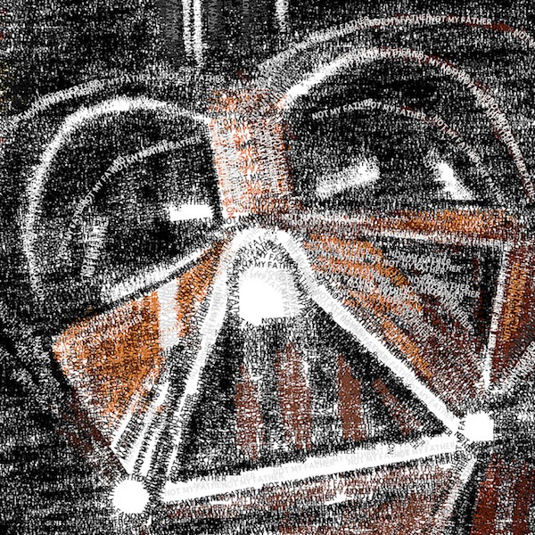Dizem que uma imagem pode valer por mil palavras. Huy Lam resolveu criar imagens a partir de palavras. O que à primeira vista parecem ilustrações feitas à lápis ou giz, na verdade merece um olhar mais atento. E, conforme nos aproximamos, palavras são reveladas. O retrato de Nelson Mandela, por exemplo, foi feito com as palavras “my hero”, já que o líder sul-africano é o herói do artista, enquanto Darth Vader foi feito com “not my father”.