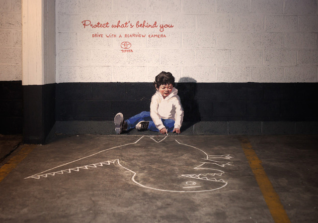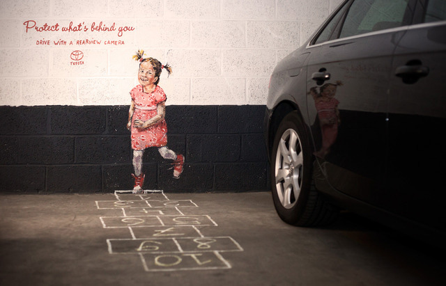 Para promover a câmera traseira em seus carros, a Toyota convocou o artista Ernest Zachaveric para realizar uma interessante ação ambiente na Bélgica.