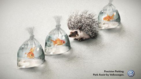 Esse é um bem bom, para promover o sensor de estacionamento dos carros Volkswagen. Uma associação rápida e efetiva.
