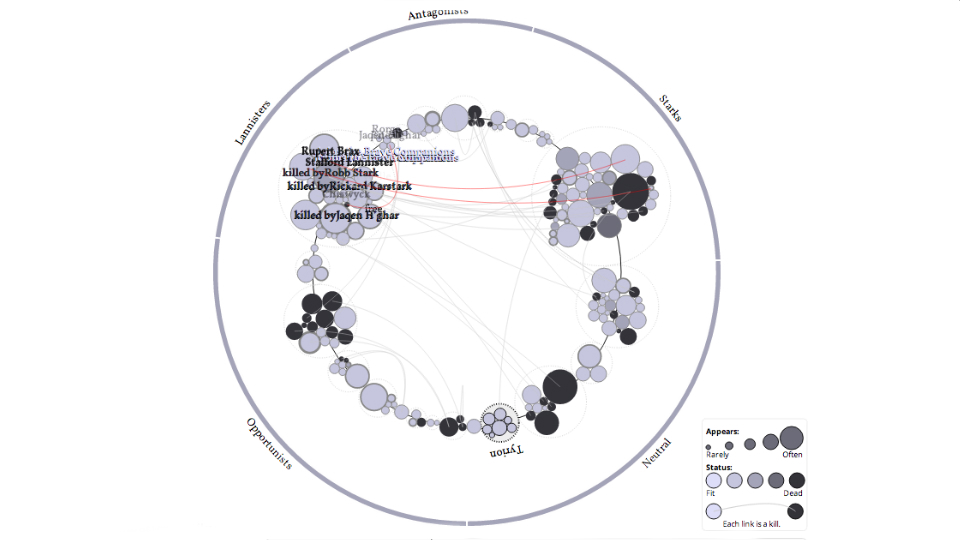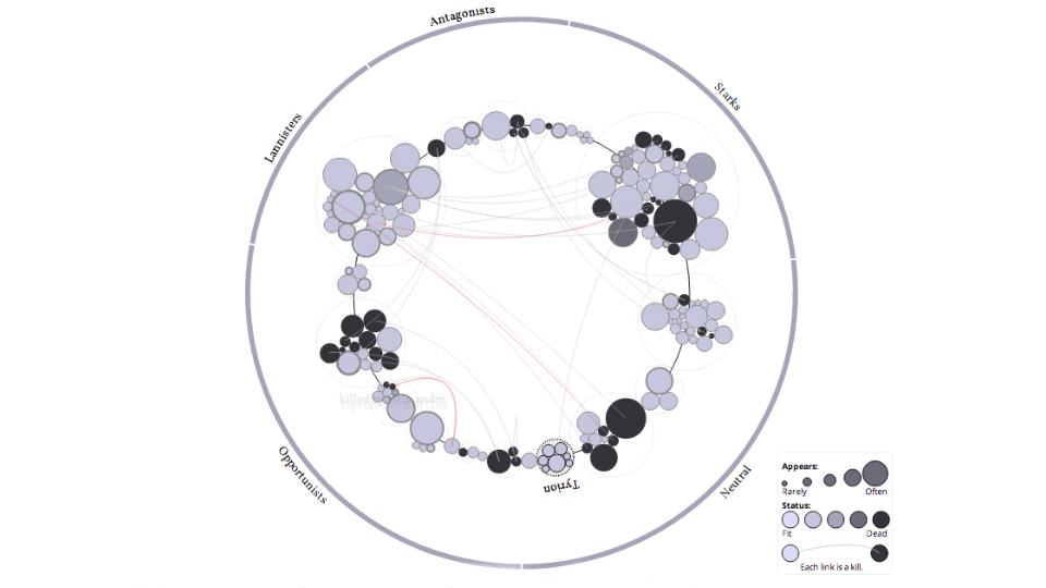 Com mais de 2 mil personagens, as relações e mortes na série de George R.R. Martin podem ser melhor compreendidas neste projeto de visualização de dados