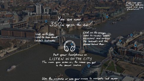 Há também o som de Londres, desenvolvido pelo London Sound Survey, dando ao usuário a possibilidade de colocar os fones e, de fato, mergulhar na trilha sonora natural da cidade, dos sinos do Big Ben