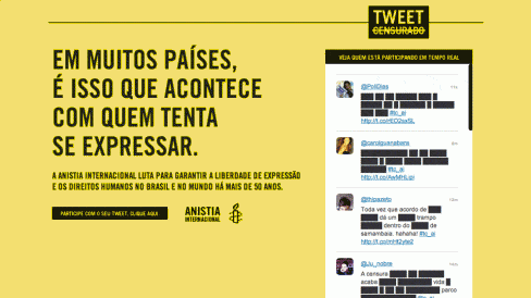 Para incentivar a discussão sobre censura e ativismo online, a Anistia Internacional – que volta a ter escritório no Brasil após dez anos de ausência – lançou uma ferramenta que simula a proibição de tweets na timeline do Twitter.